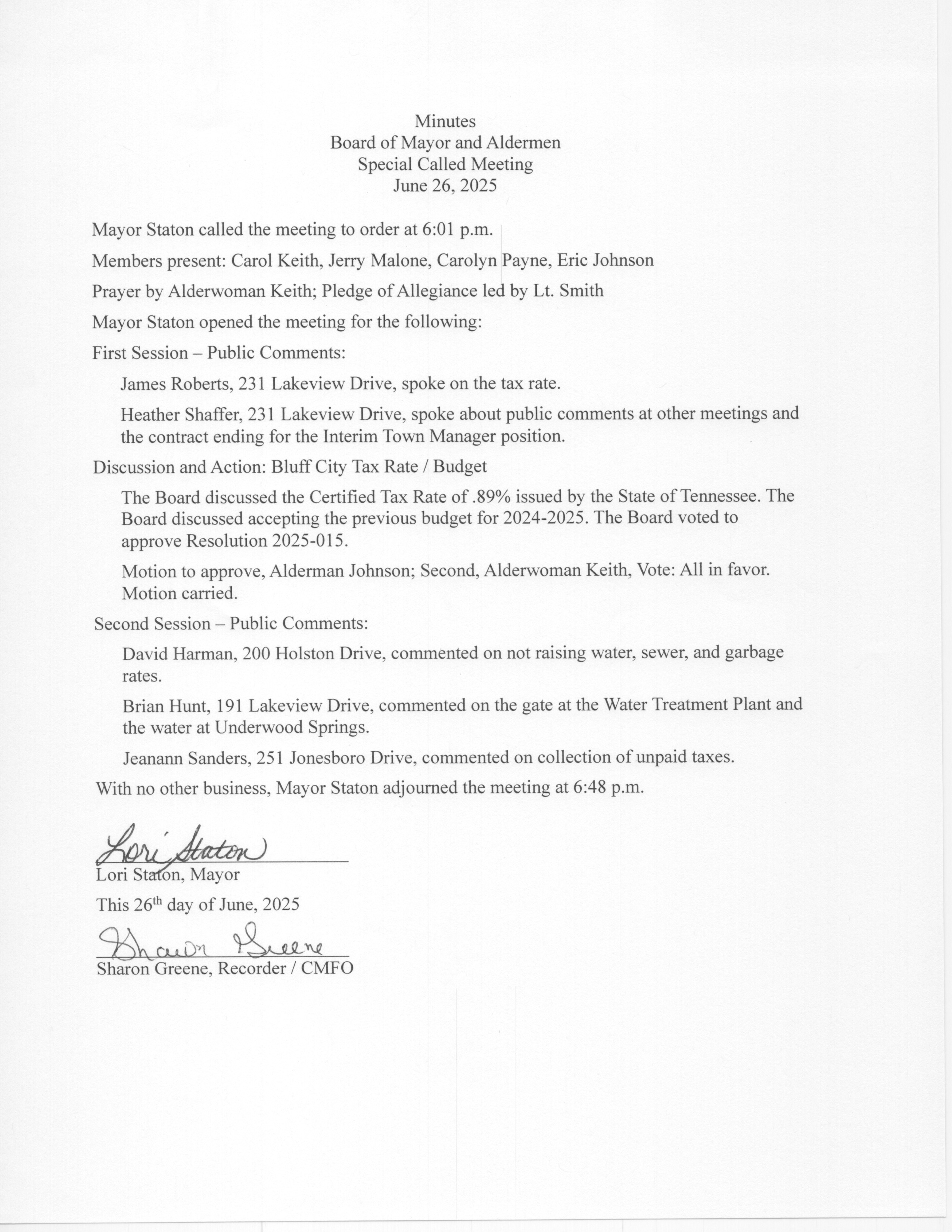 4391 Bluff City Hwy P.O. Box 70 Bluff City, TN 37618 (423) 538-7144